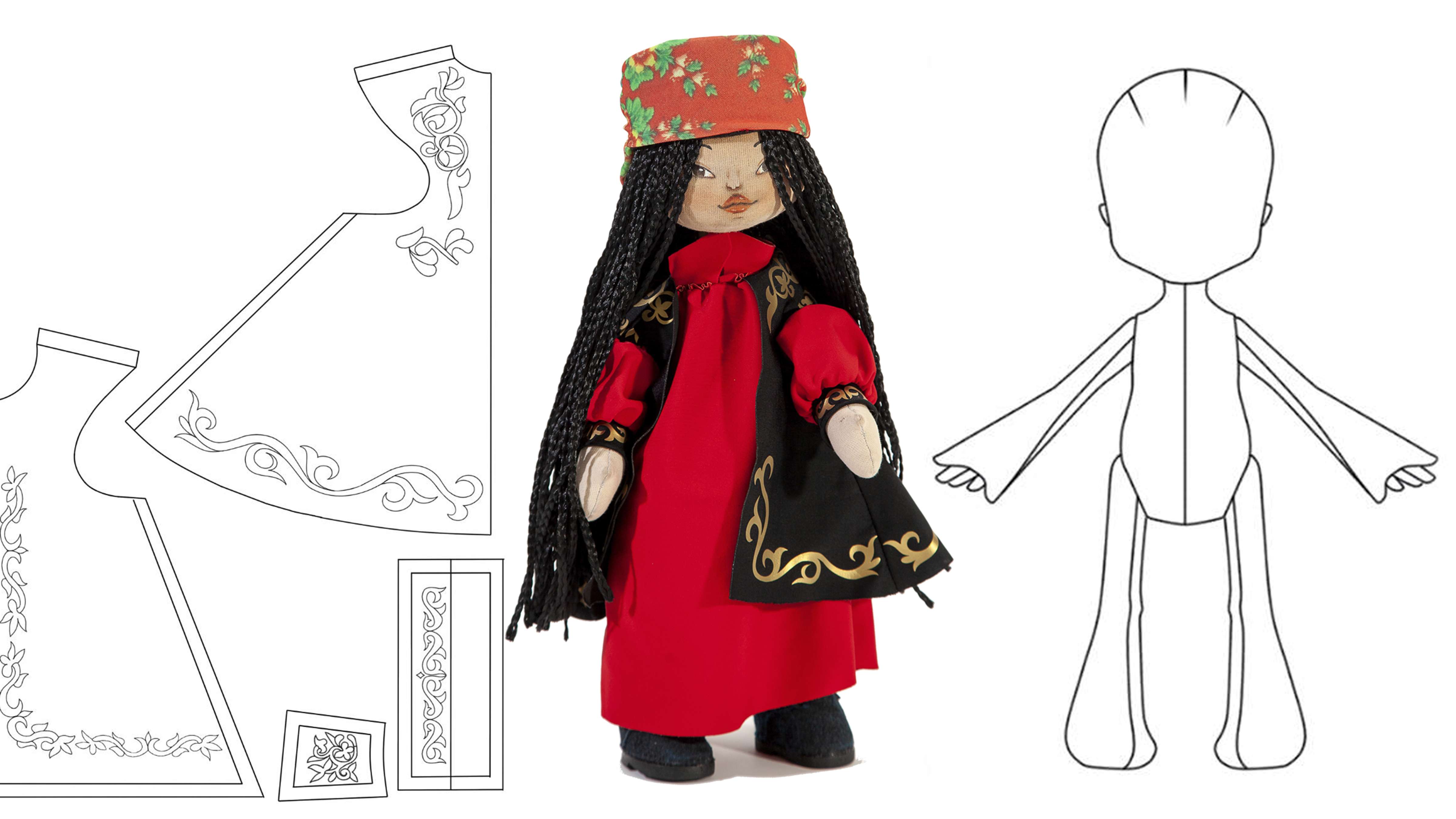 В комплект проекта "Игровая (сувенирная) кукла в хакасском национальном костюме» входит: кукла, головной убор, платье, жилет «сигедек», выкроенные делали платья и жилета для самостоятельного изготовления нового комплекта одежды по инструкции, сумка-упаковка для куклы. Одежда куклы является съемной игры, развития моторики и творческого мышления ребенка, а также для создания различных образов, которые помогают в повседневных навыков. Разнообразие одежды делает игру с куклой более интересной.