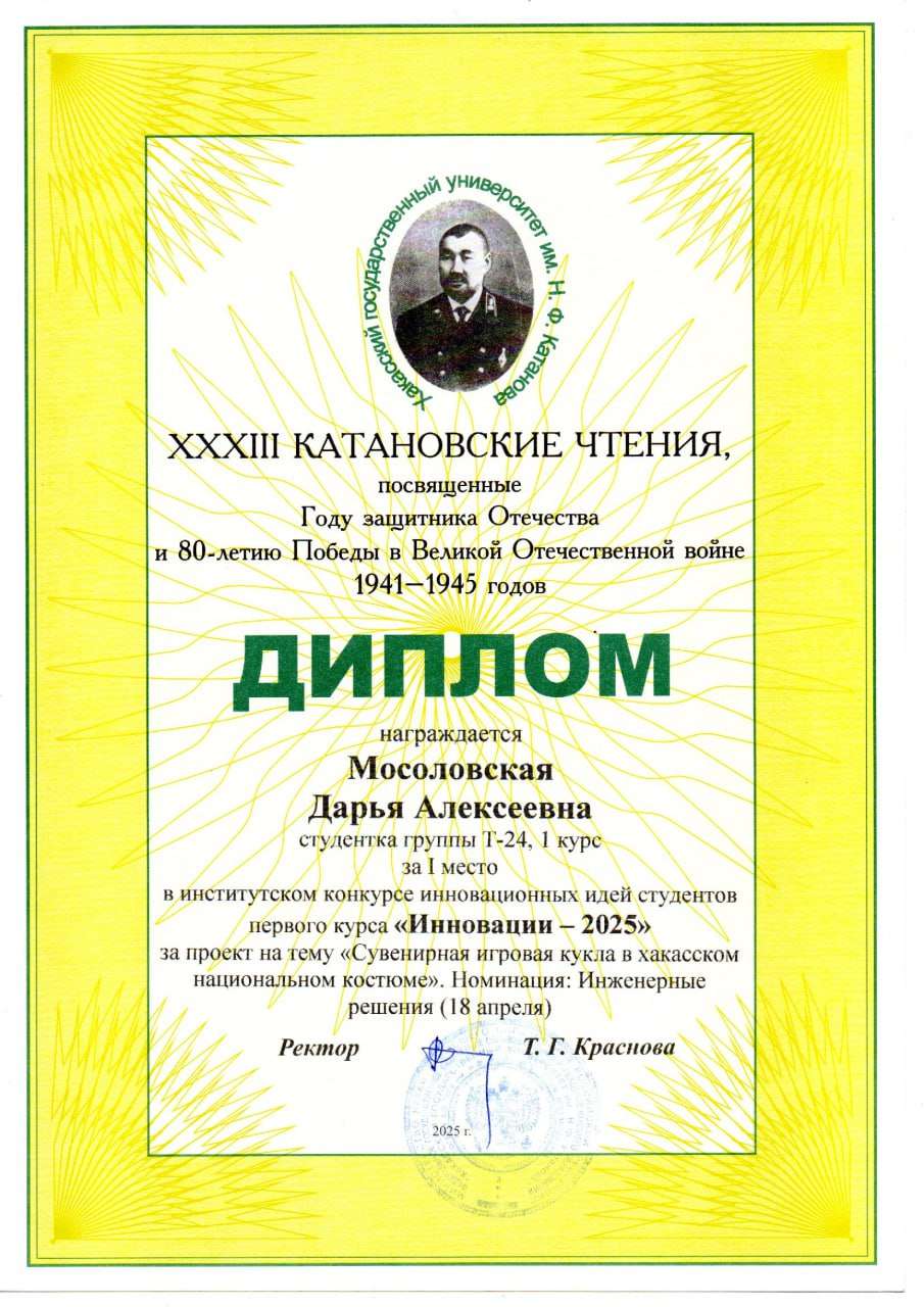Разработка и изготовление игровой (сувенирной) куклы в хакасском национальном костюме для популяризации хакасской культуры среди детей дошкольного и младшего школьного возраста, а также туристов через интерактивный подход. Для детей Хакасии такая игрушка станет способом укрепления связи с малой Родиной, формирующей чувство гордости и принадлежности к своему региону.