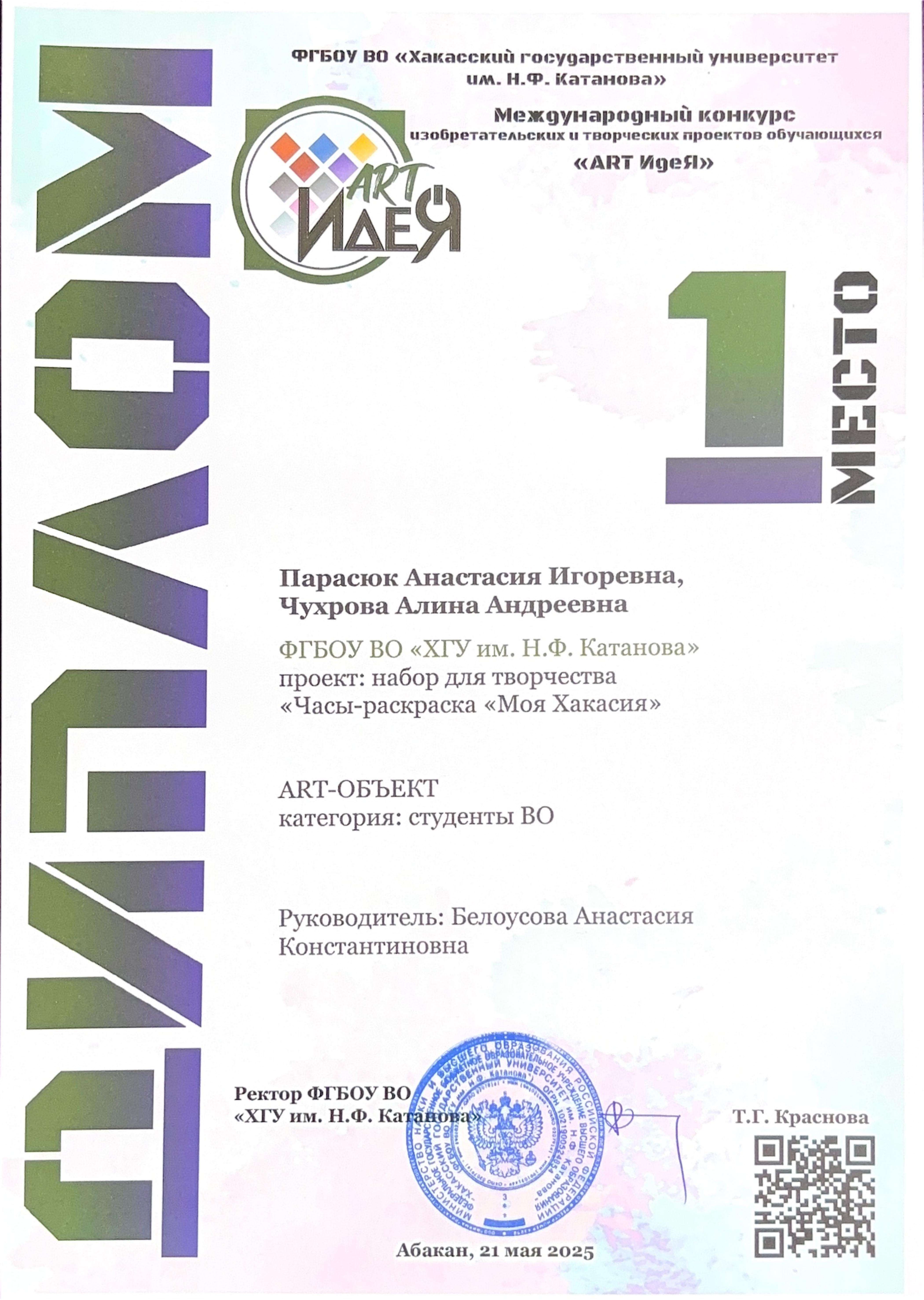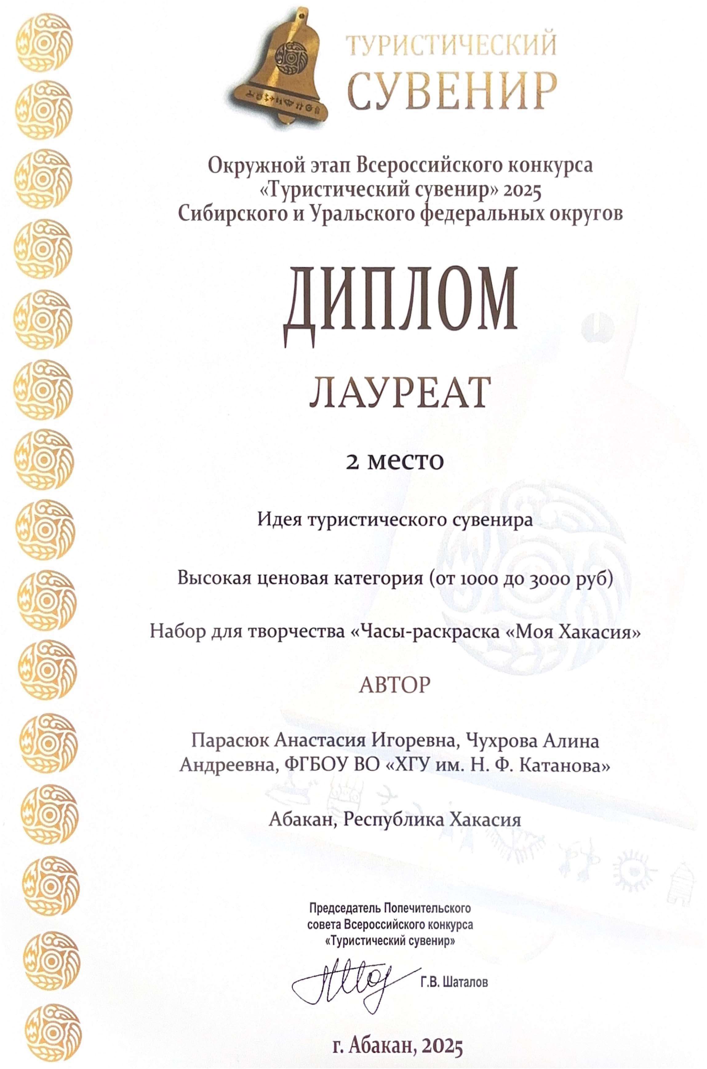Проектирование и изготовление интерактивного турпродукта «Набор для творчества «Часы-раскраска «Моя Хакасия», передающего национальную айдентику Республики Хакасия, позволяющего познакомить туристов с культурным кодом хакасского народа для потребителей разновозрастной группы.